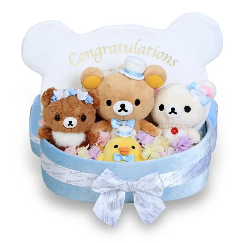 ほっと電報でご好評いただいておりますリラックマ電報第3弾では、「キイロイトリ」と「チャイロイコグマ」が初登場!オリジナルのアクセサリーでおしゃれしたリラックマ達が大切な方へお祝いの気持ちをお届けします。リラックマ型のケースに並べて付属のフラワーシャワーで飾っていただくと、ウェルカムドールとしてお使いいただけるため、結婚式の披露宴や新居でお楽しみいただけます。
