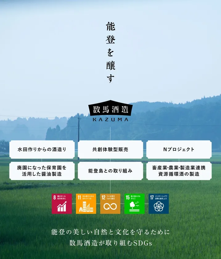 能登を醸す数馬酒造、持続的な開発目標SDGsへの 取り組みを強化し、地域での協業や雇用創出を積極的に展開