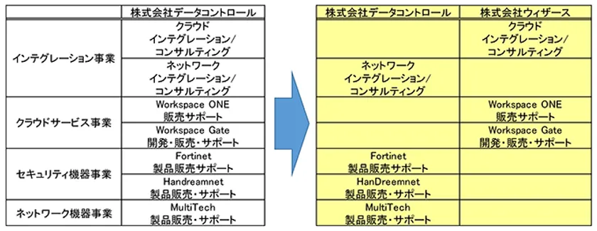 データコントロールでは、クラウドサービス「Workspace ONE(AirWatch)」を国内ではいち早く販売とサポートに取り組み、中小企業から世界にグローバル展開する大企業まで、多くのお客様にご導入させていただきました。また、「Workspace ONE(AirWatch)」とお客様の既存システムと接続するクラウドサービス「Workspace Gate」を開発、クラウドとお客様システムのシームレスな接続にお役立ていただいています。クラウドサービス間の連携が深化し、クラウドサービスへのより高度なセキュリティ対策が必要となる中、クラウドサービス開発・販売事業を分離することにより、より効率的かつ効果的な事業運営を実現すべく、ウィザースとして分社化するに至りました。
