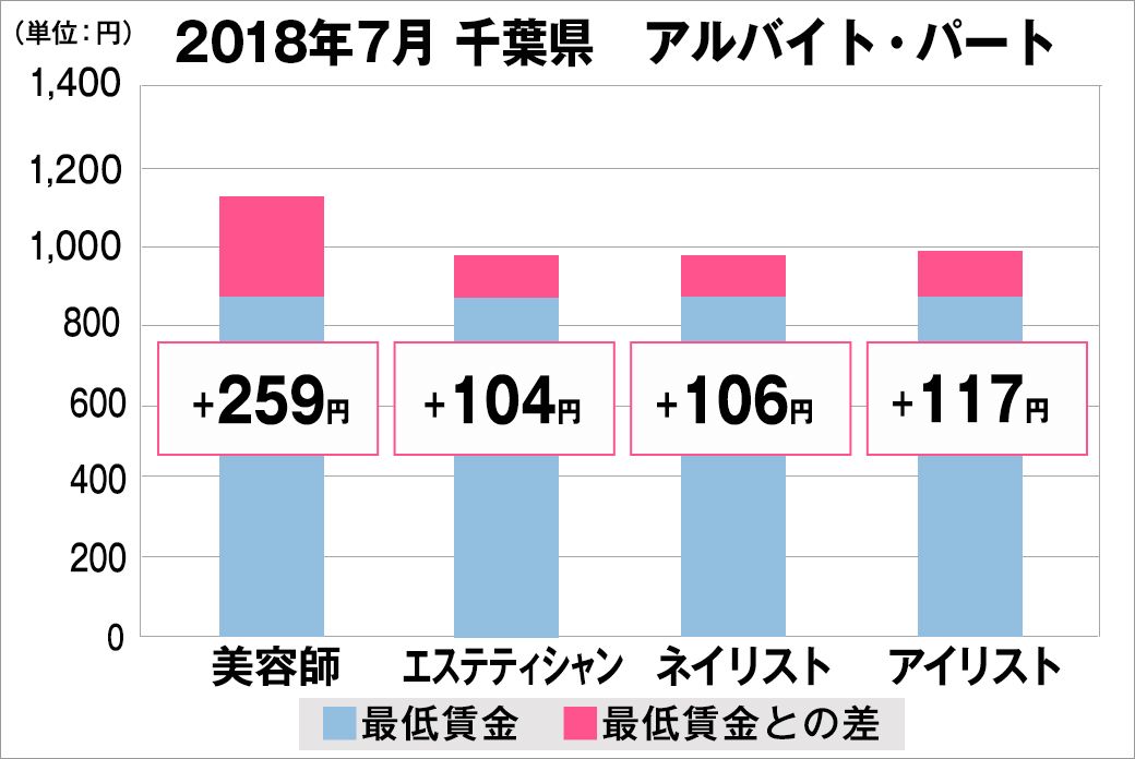 2018年7月 美容業界における採用時の給料調査【千葉版】 (美プロ調べ)