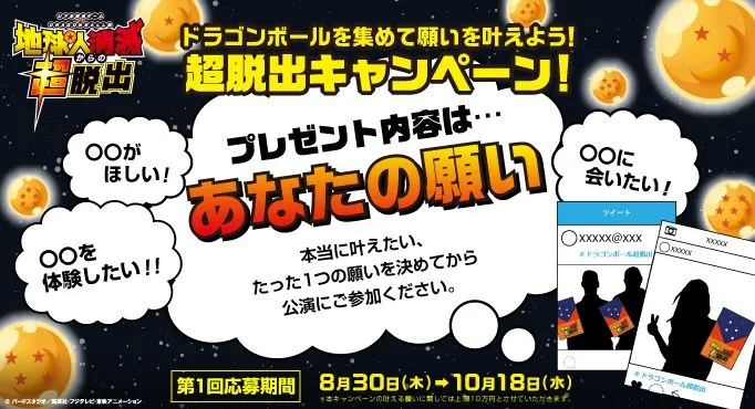 リアル脱出ゲーム×ドラゴンボール超 「地球人消滅からの超脱出」 あなたの願いをが叶える!? 本当に願いが叶うキャンペーン発表!