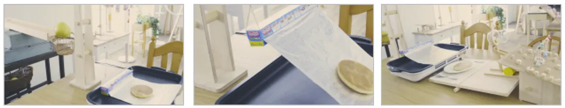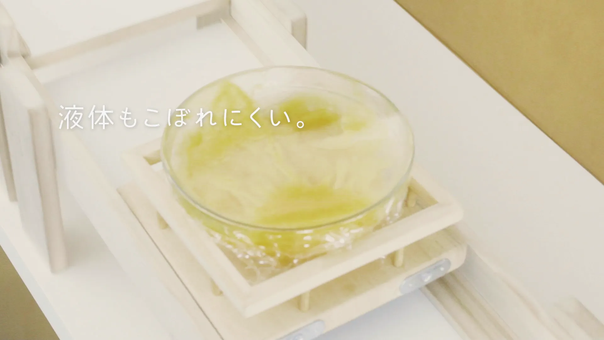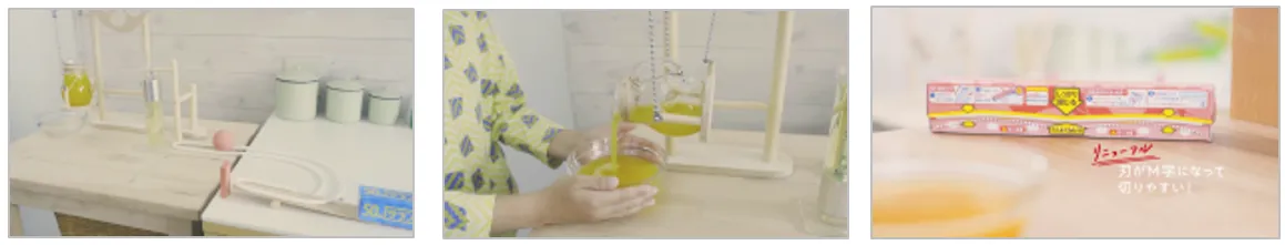 本動画では、サランラップ(R)、ジップロック(R)、クックパー(R)など、キッチンでおなじみのアイテムがからくり装置となり、様々な仕掛けを繰り広げます。キッチン関連製品の特長を活用しからくりを仕掛けた動画は、日本初の試みとなります。丈夫で密着性の高いサランラップ(R)の上をグレープフルーツがバウンドしたり、シリコーン樹脂加工で食品がくっつきにくく剥がれやすい、クックパーフライパン用ホイル(R)の上をホットケーキが滑ることで次の仕掛けへ繋がったりと、商品の特長を活かして次々と繰り出されるからくりに、目が離せません。そしてラストには、ほっこりする仕掛けが隠されています。