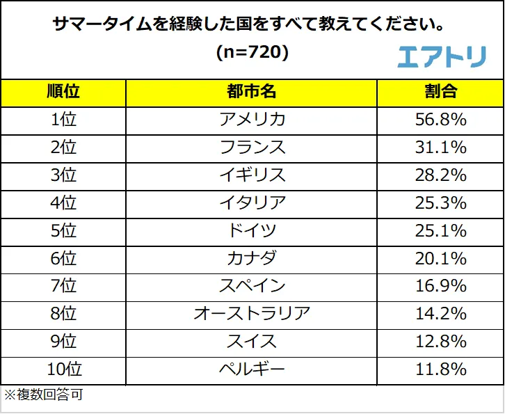 海外では、アメリカやヨーロッパなどで導入されている制度で、実際に経験したことがある人も多いのではないでしょうか。そこで、エアトリが「サマータイム」に関する意見を調査しました。