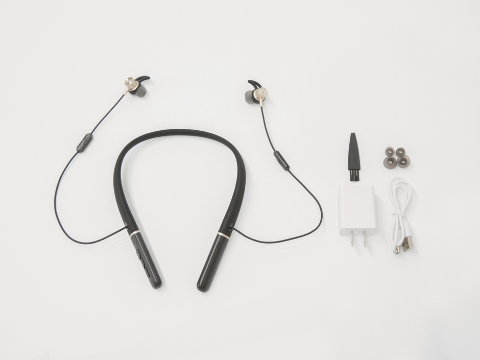 購入後すぐにご利用できるよう専用充電アダプターを付属。耳の形に合わせて選べるイヤーカフが3種付属しているので快適なフィット感を実現します。