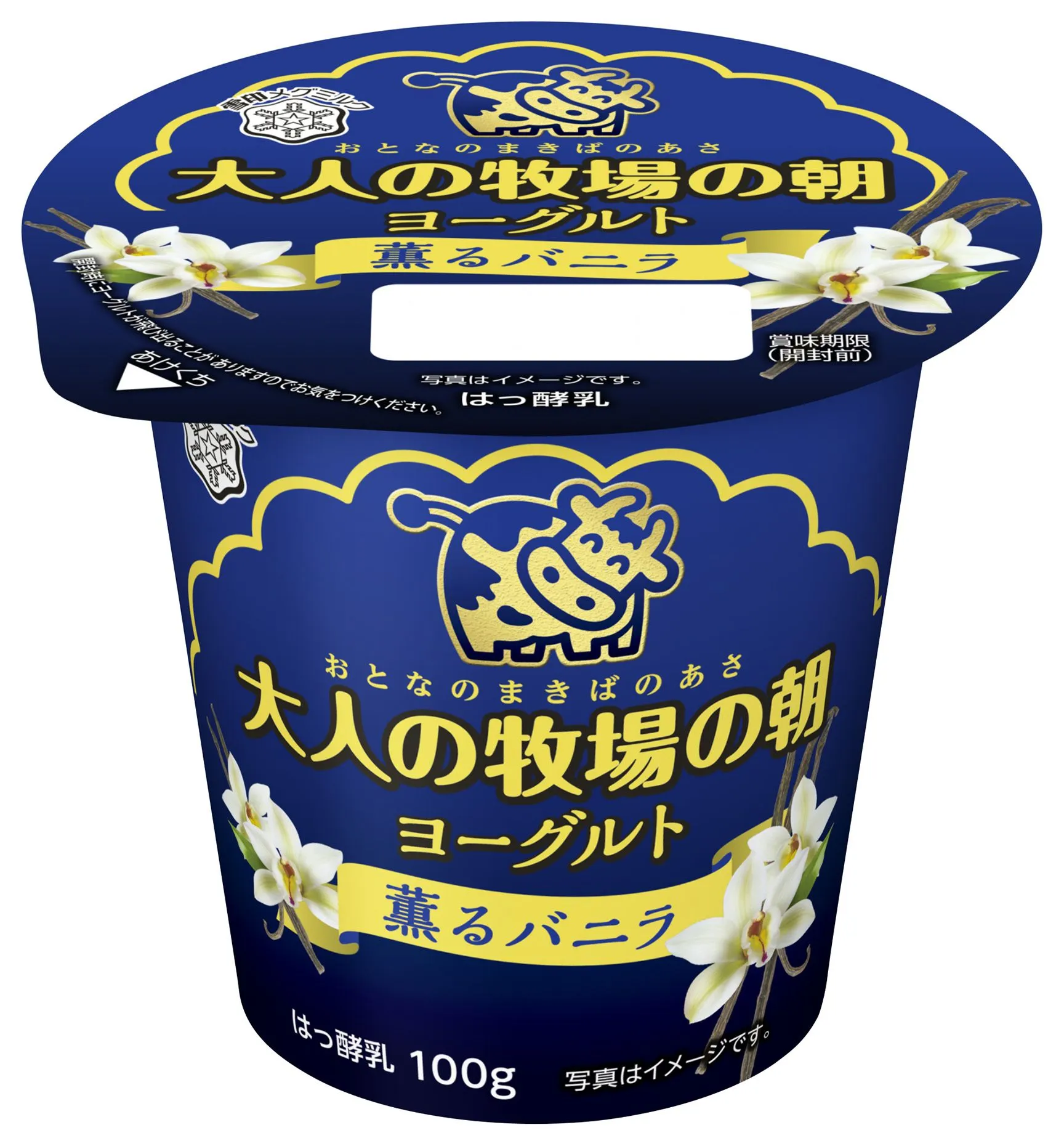 『大人の牧場の朝 薫るバニラ』は、マダガスカル産バニラシードの甘い香りとまろやかな味わいはそのままに、より大人感・上質感のあるデザインにリニューアルしました。