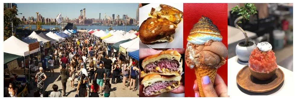 「スモーガスバーグ」とは、ニューヨーク州ブルックリンで毎週末開催されている移動型野外フードマーケットで、Brooklyn Flea社による厳しい審査に合格した店舗だけが出店できるものです。ラクレットサンドウィッチやジューシーなチーズバーガー、日本では決して食べられないアイスクリームなどを扱う店舗が軒を連ね、2011年の初開催以降、ニューヨークでは定番の人気スポットになっています。