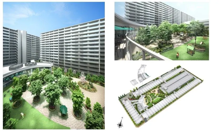 <左・右上:第1・第2街区建物外観完成予想図/右下:第1・第2街区敷地配置完成予想図>