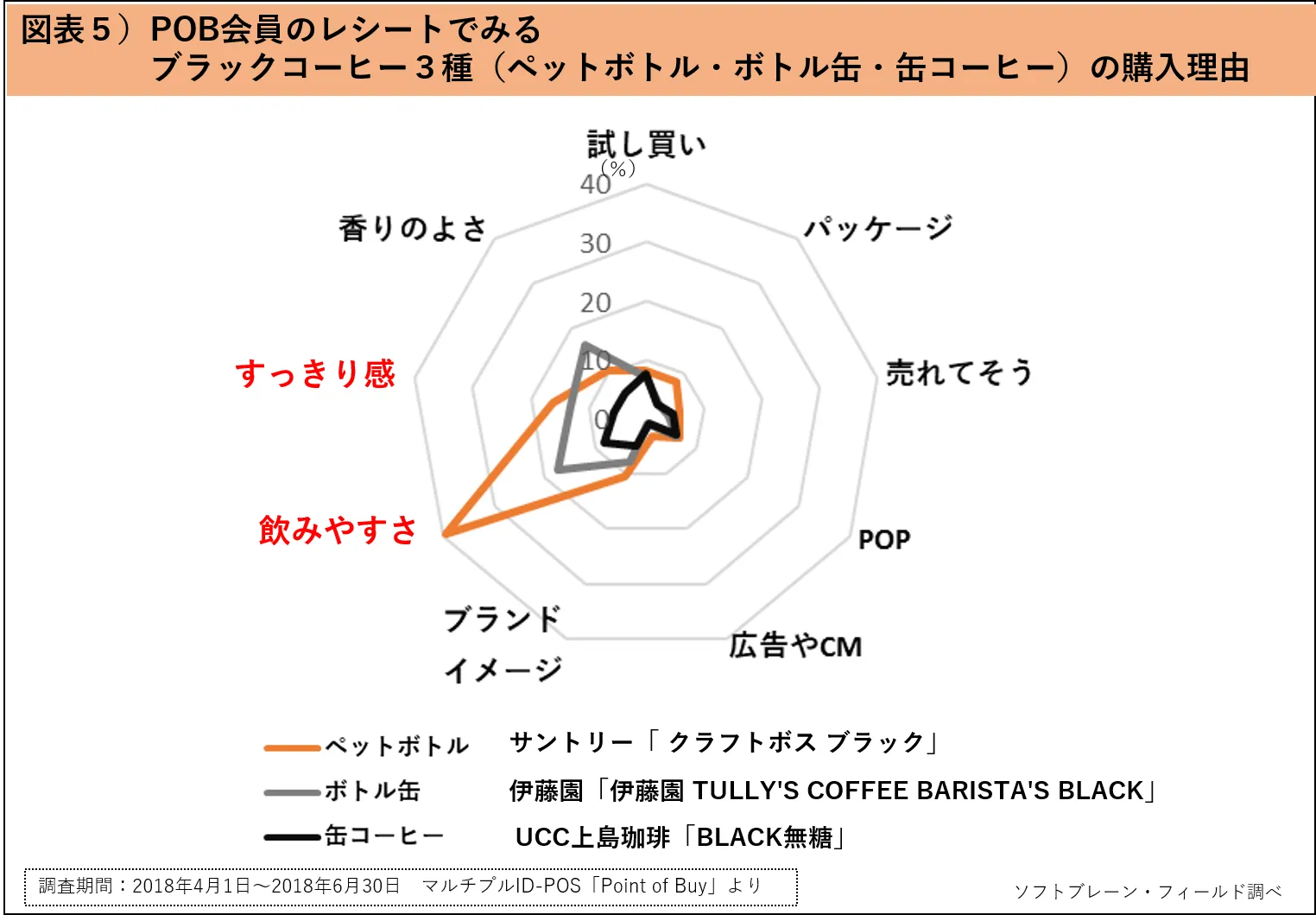 次からは、POB会員の購入レシートから、商品タイプの異なるブラックコーヒー3種を例に、それぞれの購入理由について分析をします。