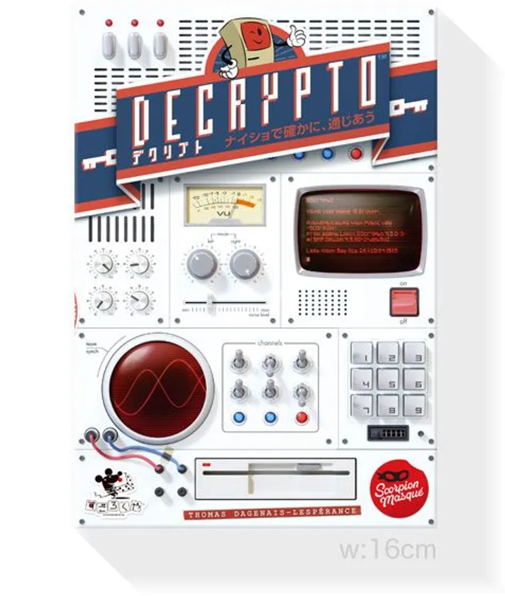 デジタル素子以前のレトロなアナログコンピュータ風デザインを踏襲しており、各チーム用のついたてをブラウン管モニターとして、差し込むと文字が現れる、不思議な「キーワードカード」も魅力です。