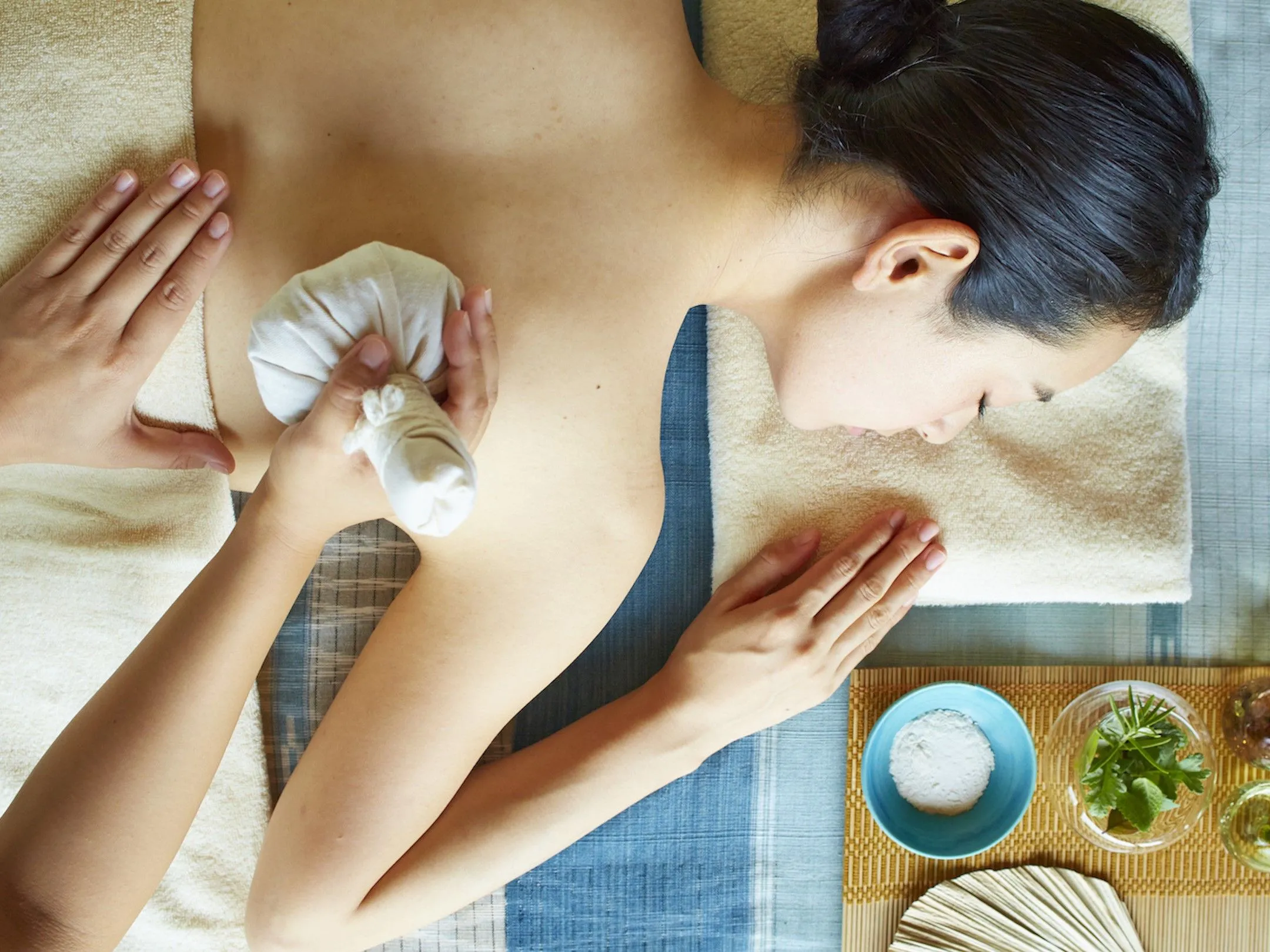 フーチバや長命草(ちょうめいそう)などを米粉に練り込み、蒸しあげて作った「フーチバ命草玉」を身体に当てながら行うメニューです。フーチバ命草玉で身体を温めた後、グレープシードのオイルで背中と脚をトリートメントします。温かなフーチバ命草玉の柔らかい感触と、優しい香りが、寛ぎのひとときへと誘います。