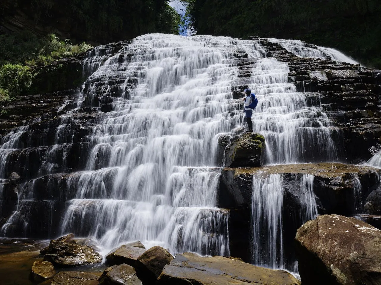 マヤグスクの滝とは、浦内川(うらうちがわ)とイタジキ川の合流地点から500m程上がったところにある、落差10m、幅15mのダイナミックな滝です。階段状の岩盤の上を水流が流れ落ちる、美しい景色が見られます。島の方言で「マヤ」はネコ、「グスク」は城のことを言い、「ヤマネコの城」という意味があります。マングローブが広がる浦内川を約2時間カヤックで進み、その後、深いジャングルの中を約3時間程かけてトレッキングします。来訪者が少なく、知る人ぞ知る秘境の滝です。