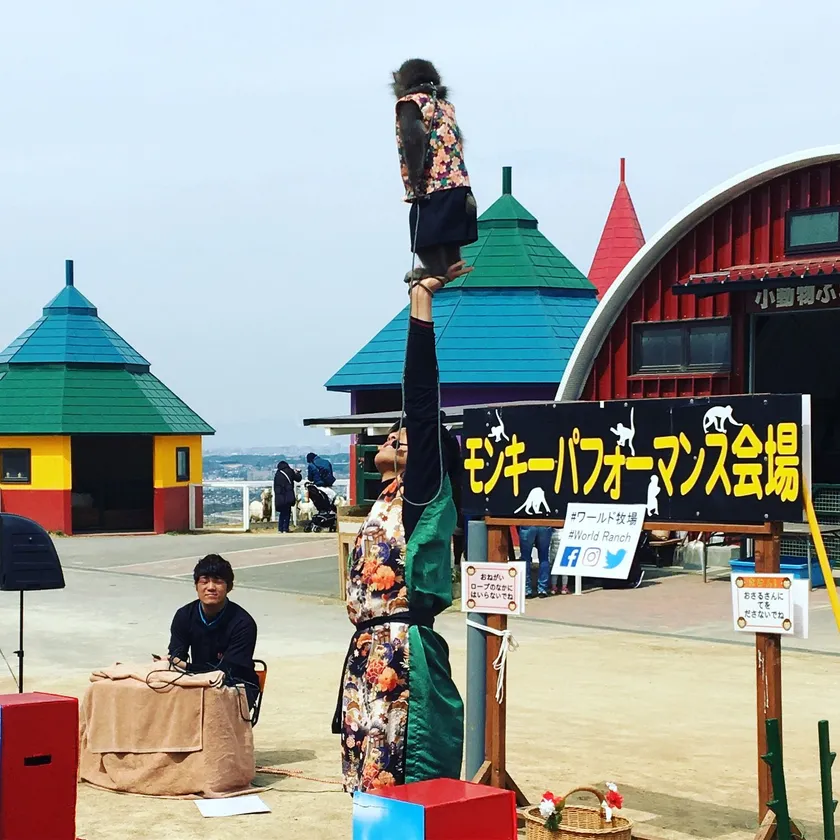 大阪の観光牧場「ワールド牧場」、9月15日~11月4日までの 土日祝に“モンキーパフォーマンス”を開催
