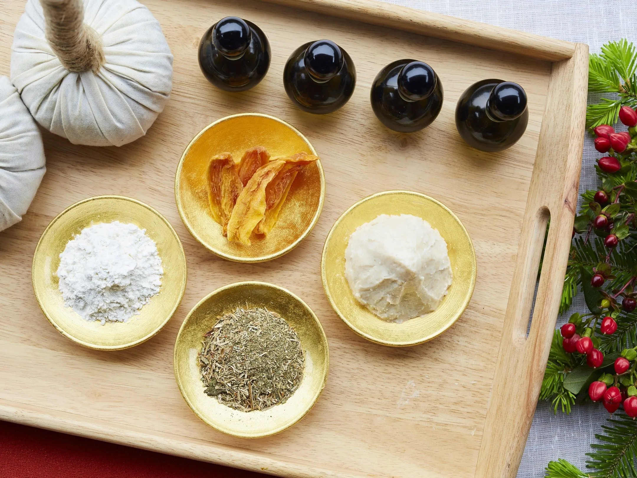 信州人が愛する伝統保存食・干し柿から発想を得た、120分のスパトリートメントです。まず星のやスパオリジナルの「粕玉(米粉に酒粕などを混ぜて蒸したもの)」で身体を温めるボディトリートメントを行います。その後、干し柿生産の際に出る、柿の皮エキス配合の美容液を浸したローションマスクで、顔に潤いを与えます。冬の乾燥でくすみがちな肌を、明るいトーンへ導きます。