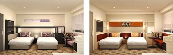 清楚で粋な印象の「さくら」、美しく艶やかな印象の「あかね」の2種類でカラースキームを展開。デザインアート、クッション等に日本の伝統的な色彩や文様を施した着物の帯生地を用いて、“和”を感じられる“粋”でモダンな空間に仕上げています。他にも、2階ロビーに「回り灯籠」(※)を使ったフォトスポットを設置することで、フォトジェニックな空間をお楽しみいただけます。