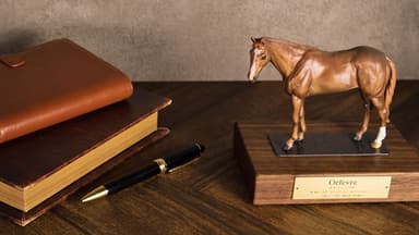 「サラブレッドは、人間が作りだした最高の芸術作品」とも称されますが、実馬を忠実に美しく再現し、台座には高級木材(ウォールナット)やアンティーク加工された真鍮銘鈑を用いて付加価値を加えた当商品は、愛玩用のフィギュアという枠を超え、インテリアとしての鑑賞にも耐えうる品質に仕上がっています。大人のためのサラブレッドフィギュアとして、新たなカテゴリーを創出してまいります。