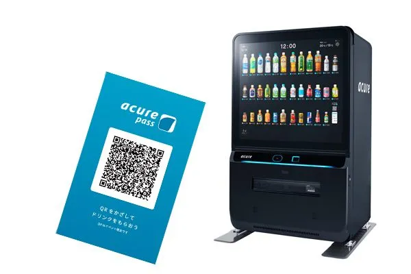 『イノベーション自販機』とは、通常のサイネージ型自販機の役割に加え、スマートフォンアプリ『アキュアパス』で事前に購入したドリンクを受け取ることができる、新しいカタチの自販機サービスです。