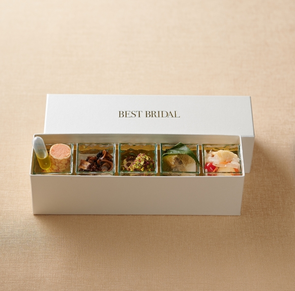 オンラインウエディングの需要の高まりとともに、このたびお客様からの要望を受けて、料理を一新。大切なお祝いの場にふさわしい上質な食材を使用した、華やかな料理へとパワーアップいたしました。新商品は3種の料理コースをご用意。前菜からデザートまで、当社スターシェフがフランス料理のスペシャリテを詰め合わせた豪華なコースを、ご自宅でご堪能いただけます。