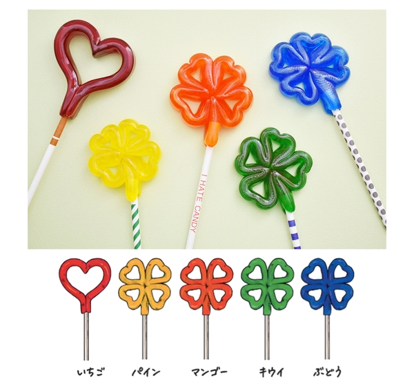 「クローバーミックス」には、4枚のハートを組み合わせた、しあわせを願うクローバーをカラフルに詰め合わせました。控え目な方でもハートを贈ることができるキャンディ。