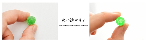 更に!パパブブレらしからぬ全身緑のキャンディが入っています。実はこれ、光に透かすと”THANK YOU”のメッセージが。奥ゆかしくも、うれしいサプライズをプレゼントできます。是非実物でこの感動を味わってください。