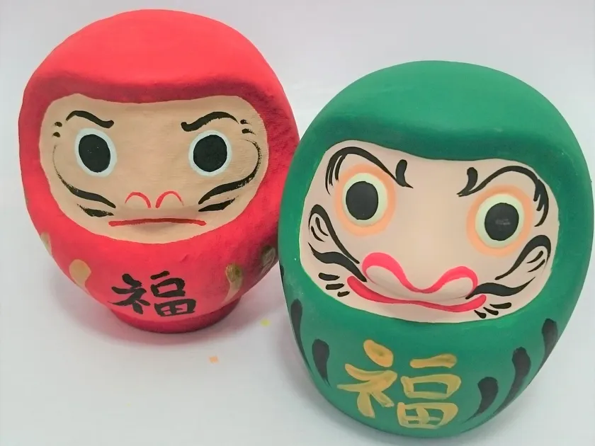 陶器で出来た貯金箱型のだるまに、絵付けを施します。自分好みの色で胴体を色付けして、表情を描いて、オリジナルだるまを作ります。