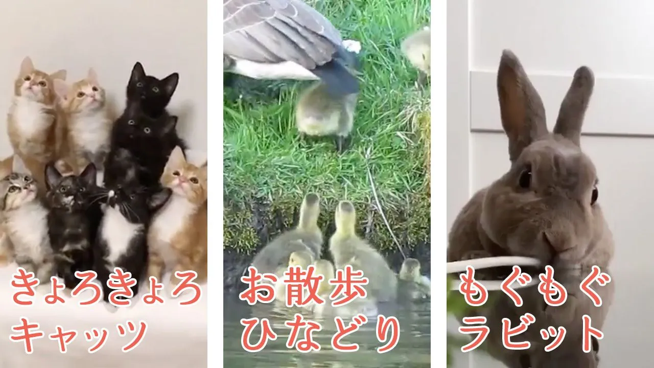 あなたにぴったりの“癒しの動物動画”が楽しめる♪ シンクロしちゃうネコちゃん達やお散歩に出かけるひなどり など…