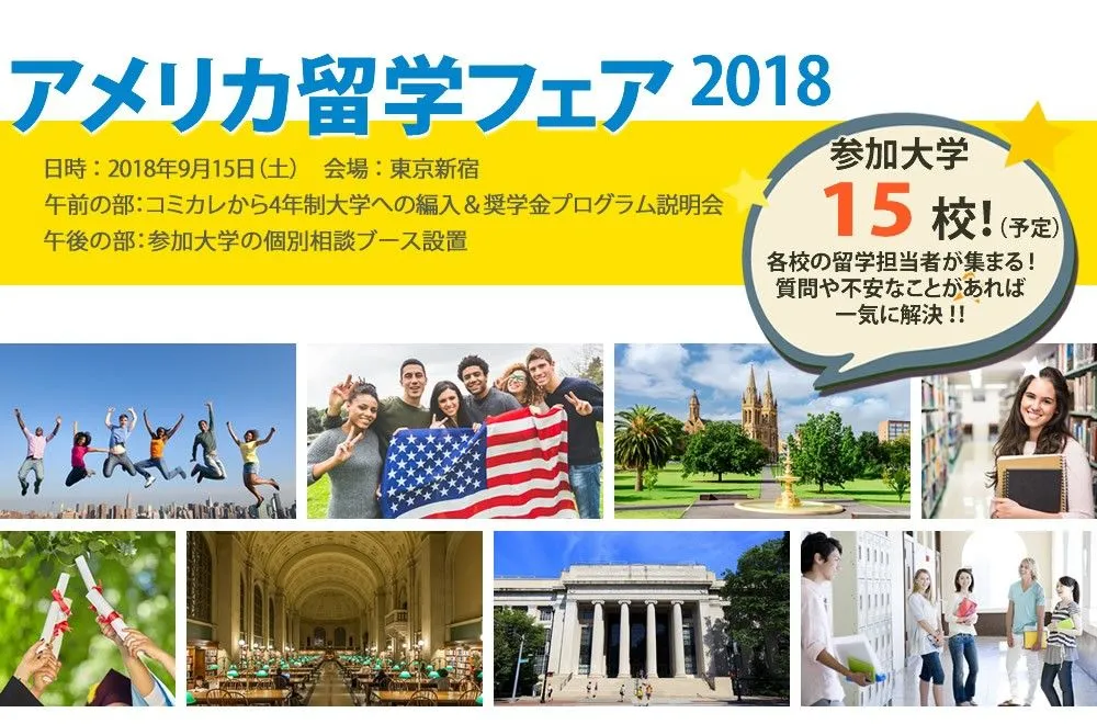 「アメリカ留学フェア2018」参加15校が決定! 9月15日(土)東京・新宿で開催