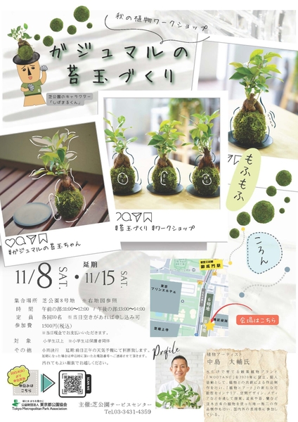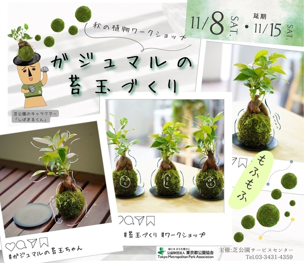 都立芝公園では、縁起の良い植物として人気のガジュマルを使って、手のひらサイズの苔玉を作るワークショップを11月8日(土)に開催します。