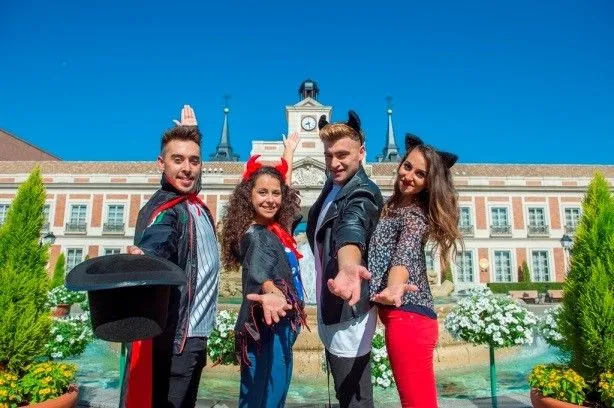 スペイン人ハロウィーンキャストがユニークなカボチャの乗り物に乗って陽気に