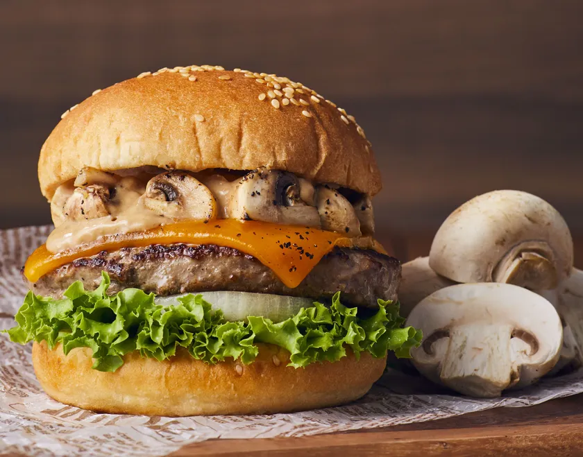 大きめにカットした「国産マッシュルーム」は食感と香りのアクセント。イタリア直送の「ポルチーニソース」は防腐剤・人工調味料不使用でとてもフレッシュでコクのある味わい。ともにクラシックパティとの相性も抜群で肉の旨みを引き立てます。