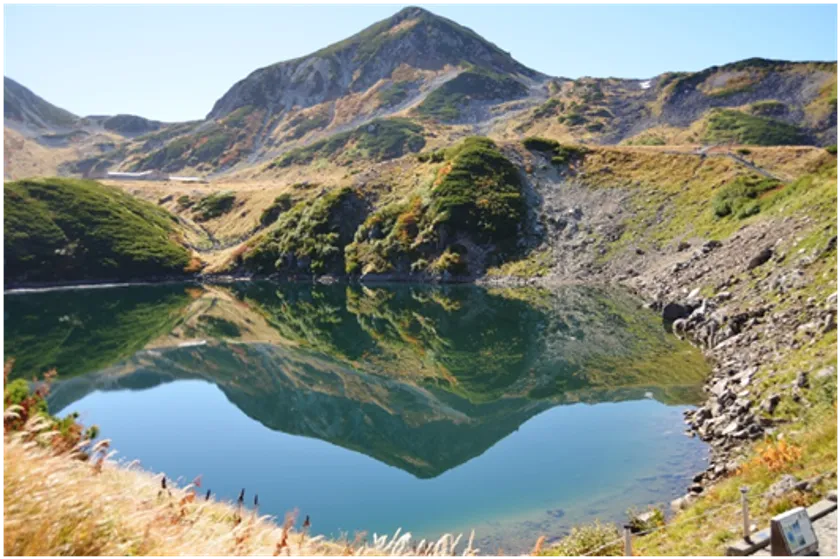<室堂平・みくりが池:紺碧の水面に映し出される立山>