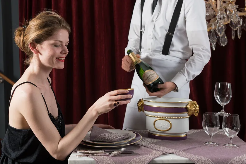 開窯より300年を迎えた2018年、過去と現代を融合させた美しい紫色で、18世紀から20世紀までにおけるアウガルテンの各時代を象徴するチョコレートカップ&ソーサー、シャンパンボウル、ワインクーラー、フィギュリンの4点6種類のアイテムを復刻しました。
