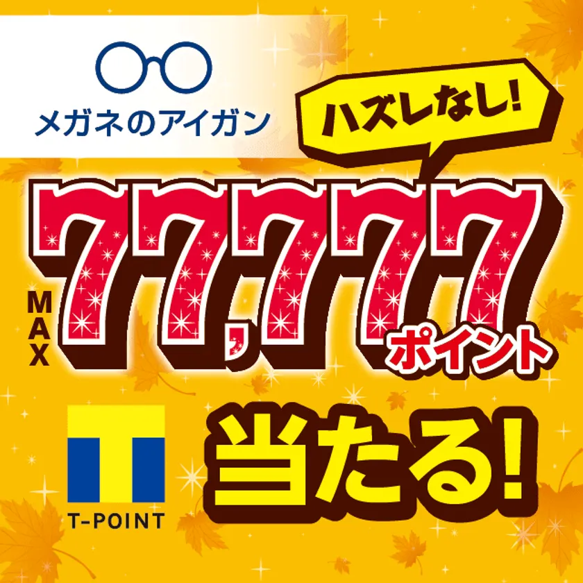 その場で77,777 Tポイントが当たる愛眼「秋のアイガンくじ」実施 ハズレなしのキャンペーンを全国245店舗で10月13日まで開催