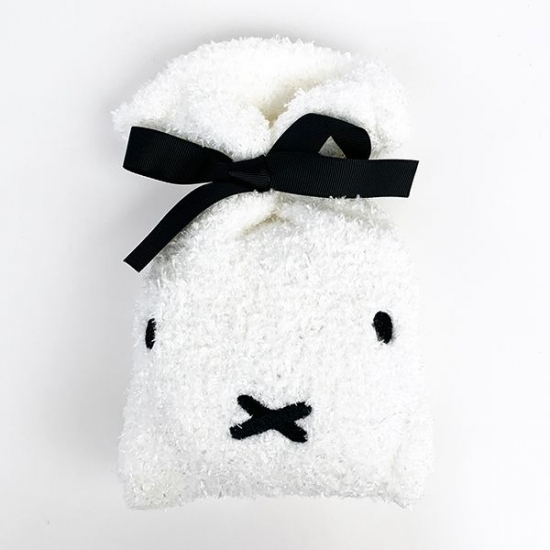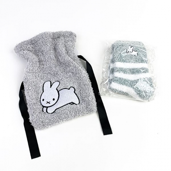 癒しキャラのミッフィーのグッズに、ふわふわでもこもこな素材の巾着入り靴下が到着しました。