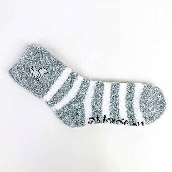 こちらの靴下は、グレー×ホワイトのボーダー柄です。上部にはうさぎのワンポイントも入っていますよ♪