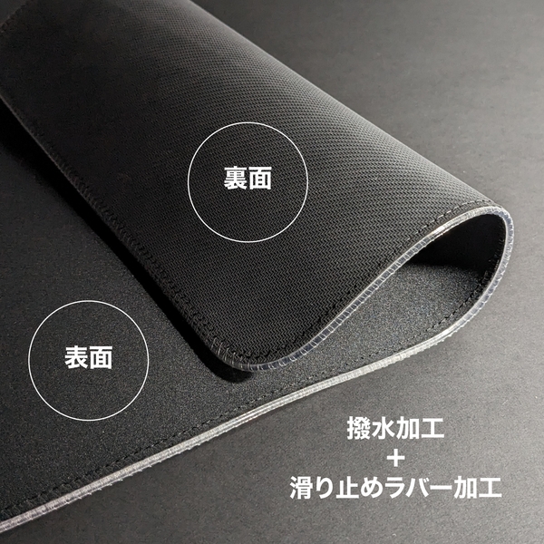 光学式マウス対応。表面には触り心地が良く滑らかなマイクロファイバーの柔らかい生地を使用しており、マウスを傷つけてしまう心配はありません。また、表面には撥水加工を施しており水分や汚れに強いデスクマット/マウスパッドに仕上げ、最高のコストパフォーマンスを実現しました。裏面は全面滑り止めになっておりますので、ゲーム中に本製品が滑ってしまうという心配はありません!