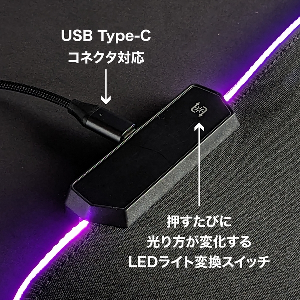 マウスパッド/幅350mm奥行250mm厚み4mm TypeCコネクタ LED搭載