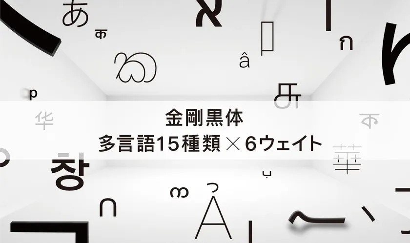 提供する「金剛黒体」多言語は、「簡体字中国語GB2312」「簡体字中国語GB18030」「繁体字中国語」「韓国語」「ラテン語」「ベトナム語」「タイ語」「タイ語(モダンタイプ)」「ビルマ語」「ヒンディー語」「ヘブライ語」「アラビア語」「ベンガル語」「シンハラ語」「タミル語」による15種類6ウェイトで合計90書体となり、日本語書体の金剛黒体StdN版、Pro6版、Pro6N版18書体を加えますと合計108書体となります。