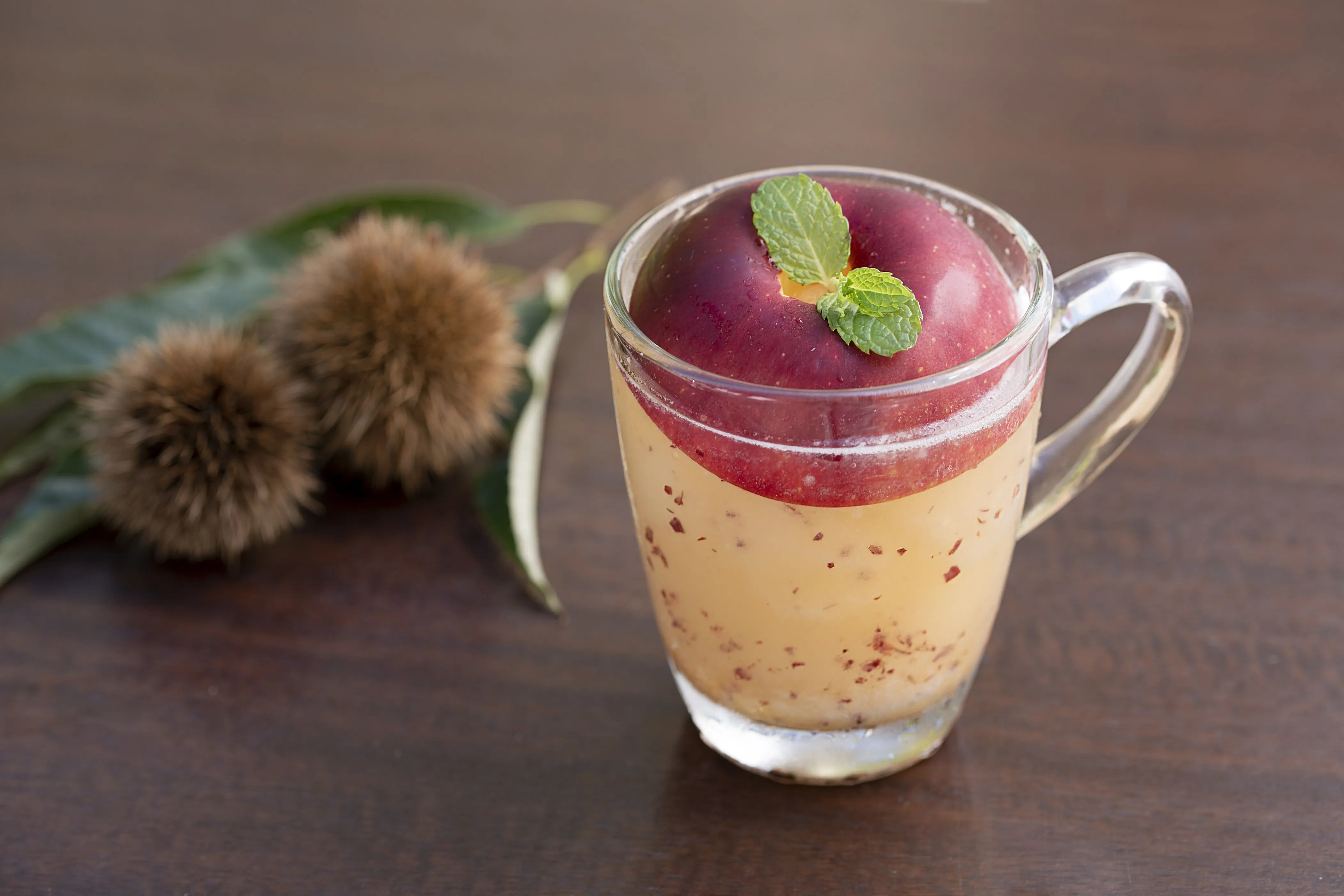 黄金色の綺麗な色合いが、どこか懐かしさを回想させる、秋めくドリンクに仕上げました。