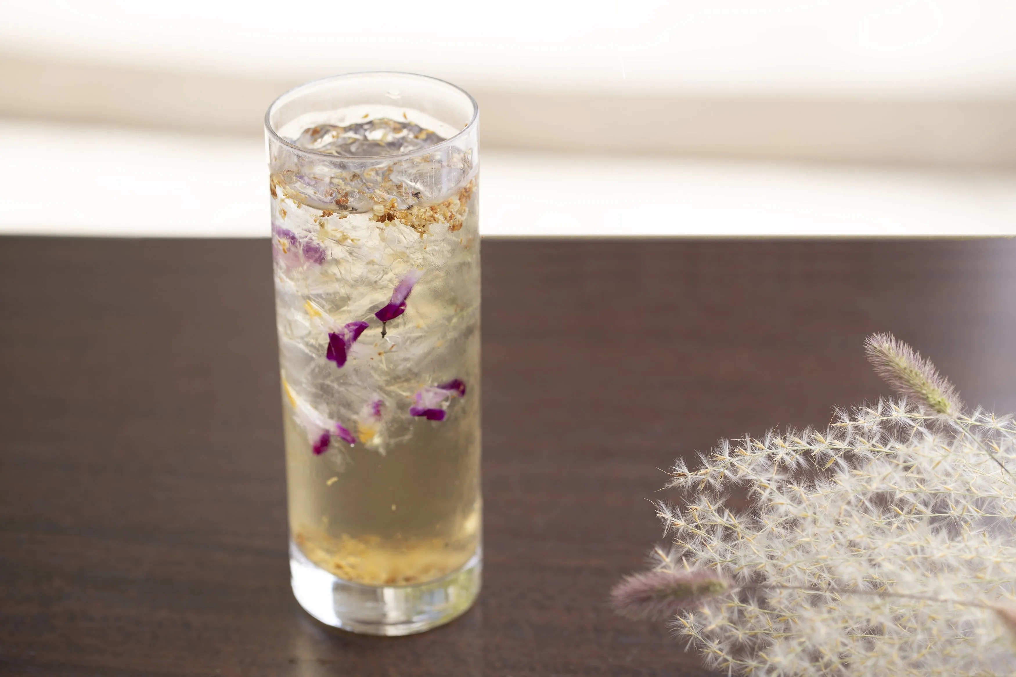 華やかに香るキンモクセイに、ジンジャーハーブティーの自然な甘みと、ハチミツが溶け合うコールドドリンクです。
