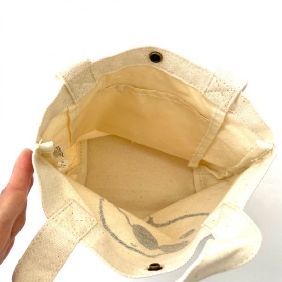 こちらも内ポケットがあり便利。マチが約11cmとしっかりあるので、ランチバッグとしてもお使いいただけますよ♪ランチボックスとボトル・歯ブラシを入れたらお昼休みセットの出来上がりです。