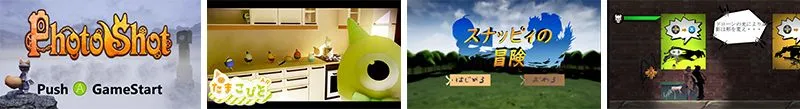(上画像左から:PhotoShot(フォトショット)、たまこびと、スナッピィの冒険、シャドウ)