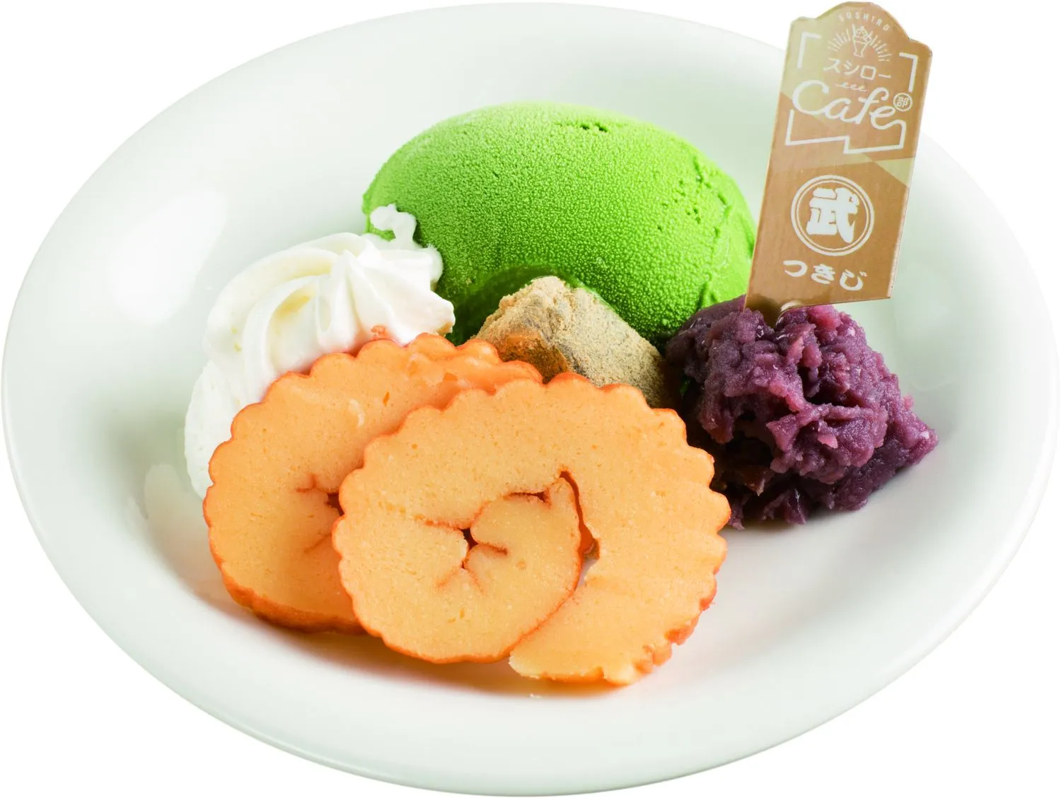 ■商品概要 :大正末期創業の玉子焼き専門店「丸武」の、クリームチーズを練りこんだ優しい味わいの伊達巻を使用。そこに抹茶アイスとわらびもち、あんこを合わせ和風デザートに仕上げました。