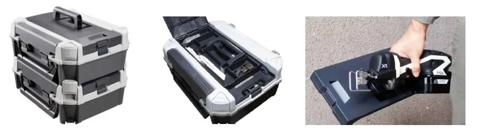 持ち運びやすさや、収納しやすさを考慮し連結も可能な付属キャリングケース。刃などを収納する上部の小物入れケースは、取り外して持ち歩くこともできます。