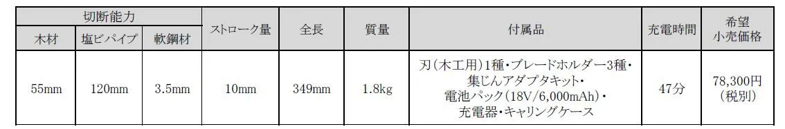 本モデルの市場投入により、当社が注力する電動工具事業のより一層の拡大を図ってまいります。