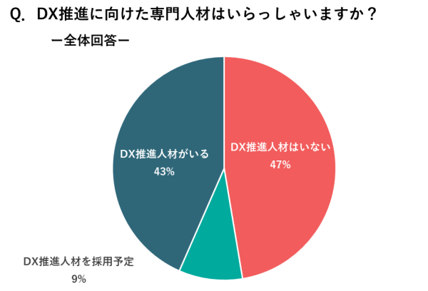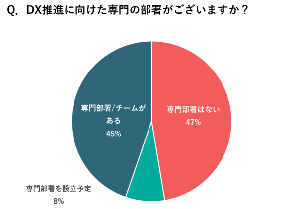 2.専門人材、専門部署に関して、ともに47%が「ない」と回答、およそ半数にのぼる。