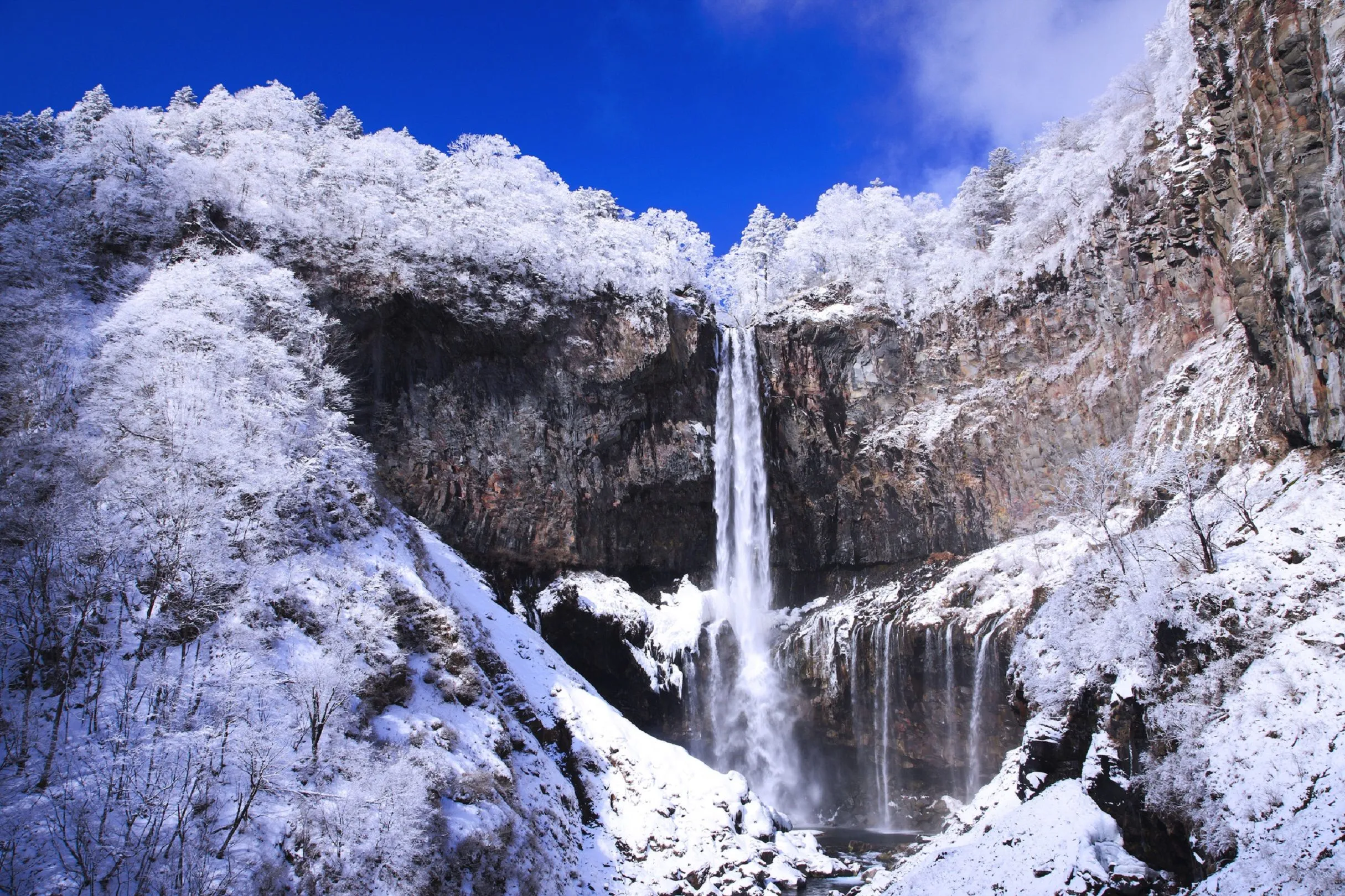 2日目は、冬の日光国立公園を満喫。日光は大変滝が多いエリアで、界日光から車で3分程の場所には、日本三名瀑の1つとして有名な「華厳の滝」があります。他にも「竜頭の滝」や「湯滝」があり、いづれも標高約1,300m以上の高さにあるため、気温や湿度が異なることから様々な形の雪の結晶に出会えます。