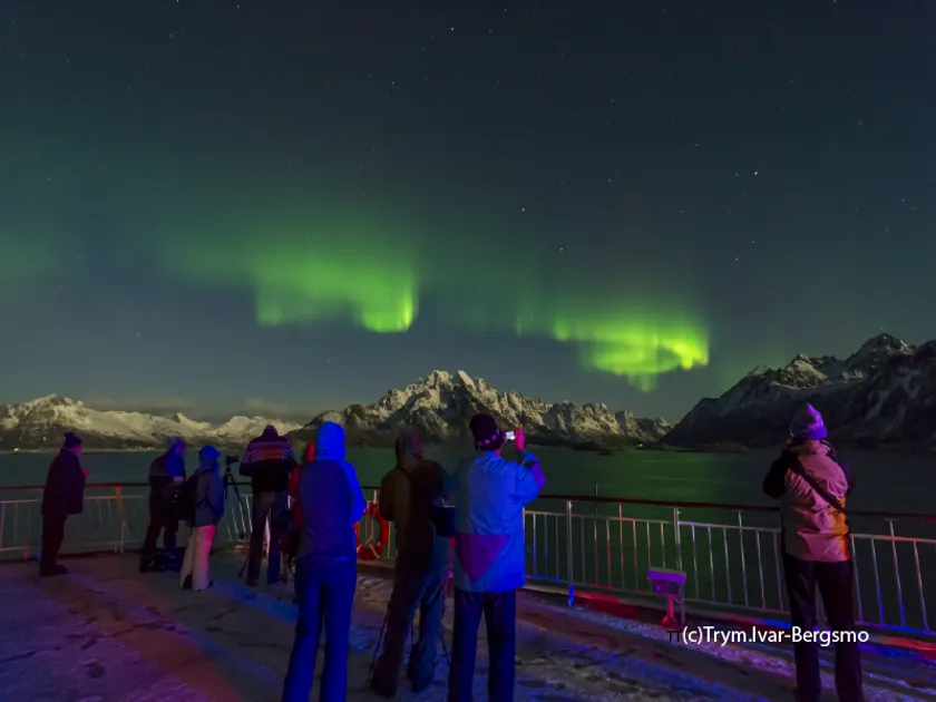 冬の北極圏で出会うことができるオーロラは、『一生に一度は見てみたい』神秘的な体験。マイナス30℃の極寒の世界でつらそう・・・と思われがちですが、暖流の影響で冬でも比較的暖かいノルウェーでは、マイナス4度前後とスキー場感覚でオーロラ遭遇のチャンス!今回は、船上からオーロラ観測とのんびりクルーズライフも楽しめる一石二鳥の楽々オーロラツアーを企画しました。