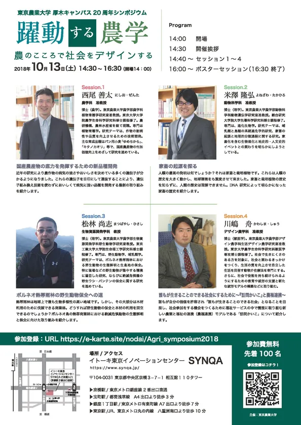 東京農大厚木キャンパス20周年シンポジウム 10月13日(土)、東京京橋にて開催