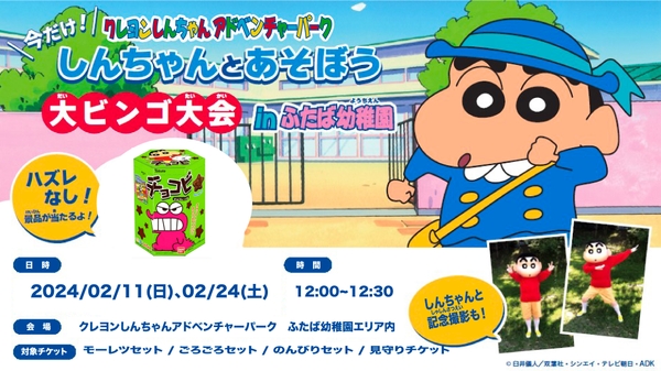 2024年は3連休が10回も!! 『クレヨンしんちゃんアドベンチャーパーク大ビンゴ大会』 2月11日、24日の2日間限定で復活開催