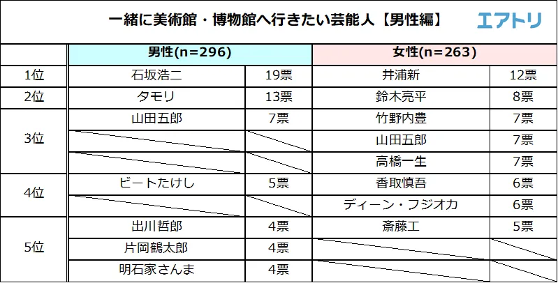 調査4:一緒に美術館・博物館に行きたい【男性芸能人】を教えてください。